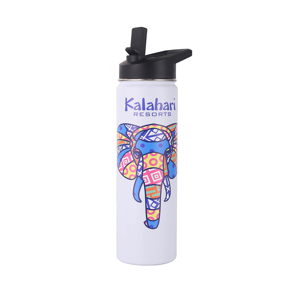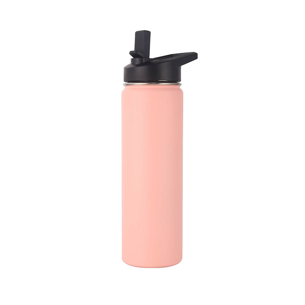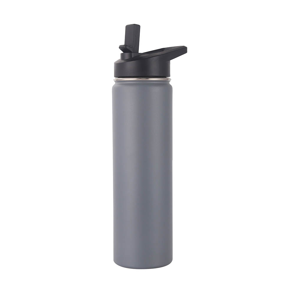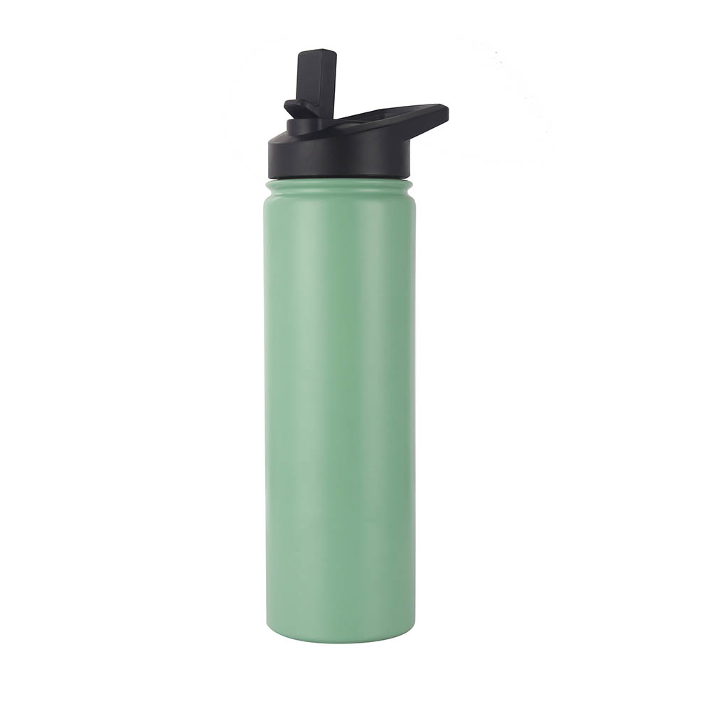 This 25 oz vacuum insulated water bottle features with a screw on flip-top straw lid and an easy carry loop handle, made from double wall food grade stainless steel material with powder-coated finish. It keeps beverages hot for up to 12 hours and cold for up to 24 hours, great for the gym, school, or outdoor adventures. Get either the standard permanent laser engraved imprint or an optional full color imprint, our list price is based on laser engraved or 1 color imprint. We provide multiple different lid option, welcome to inquiry us!