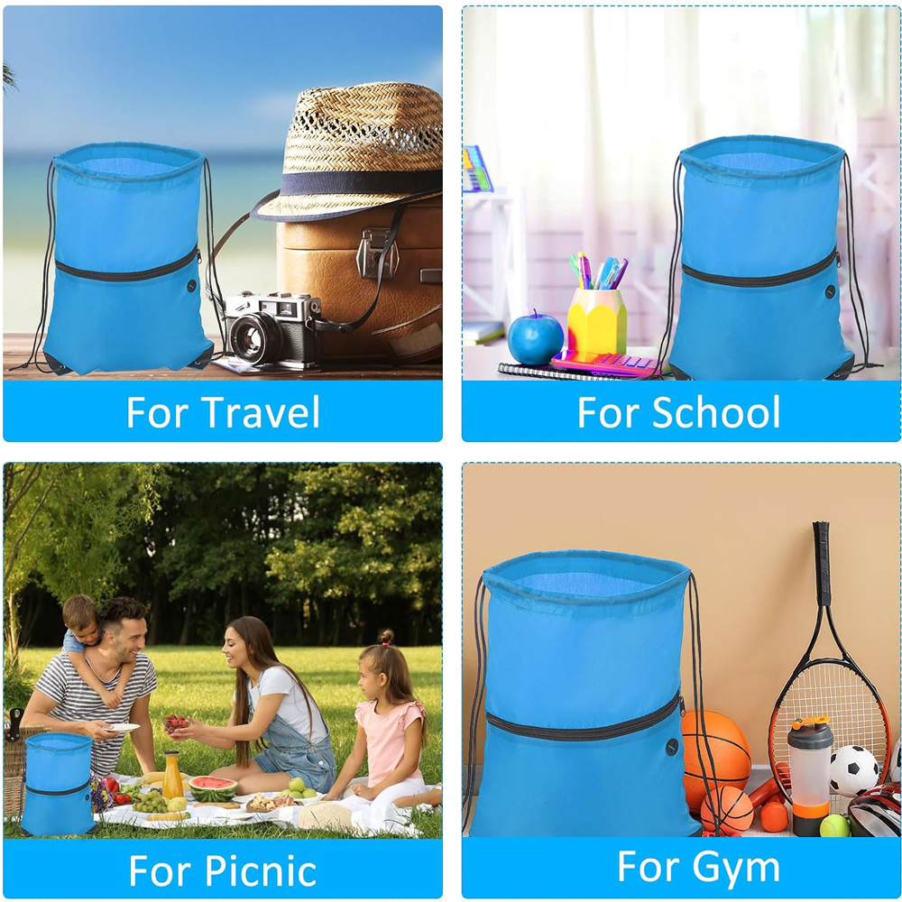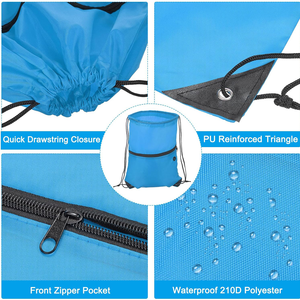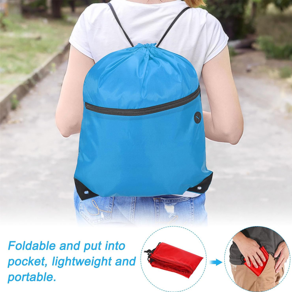 This drawstring backpack is made of 210D polyester fabric, which is lightweight and durable, not easy to tear, and easy to clean. Perfect for the gym, yoga, basketball club, outdoor sports, cycling, hiking, swimming, picnics, camping, hiking, team building events, beach trips, and more, making it easy to carry essentials on the go.